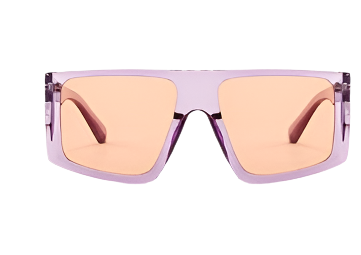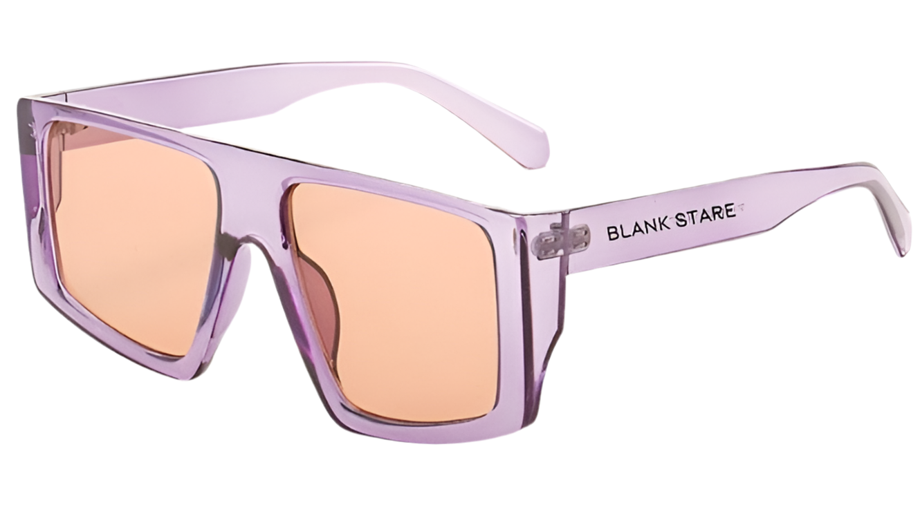 Oversized, translucent purple frames paired with peach-tinted lenses and signature black "BLANK STARE" detailing. This playful design is perfect for standing out.