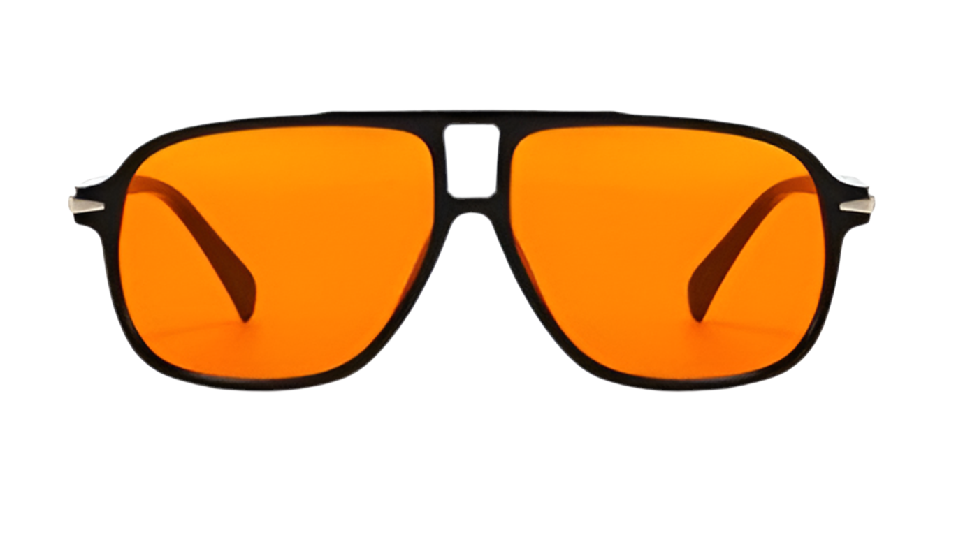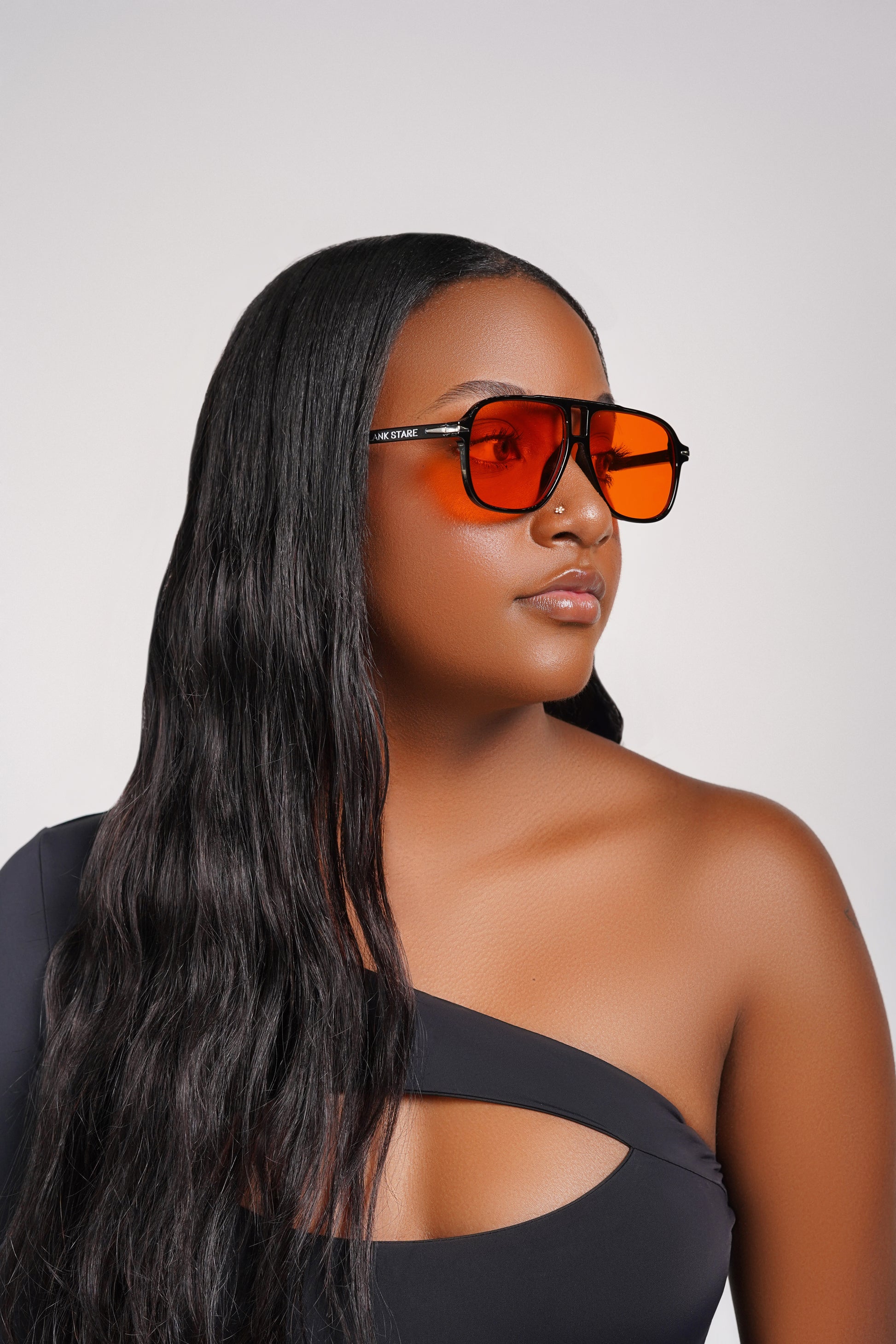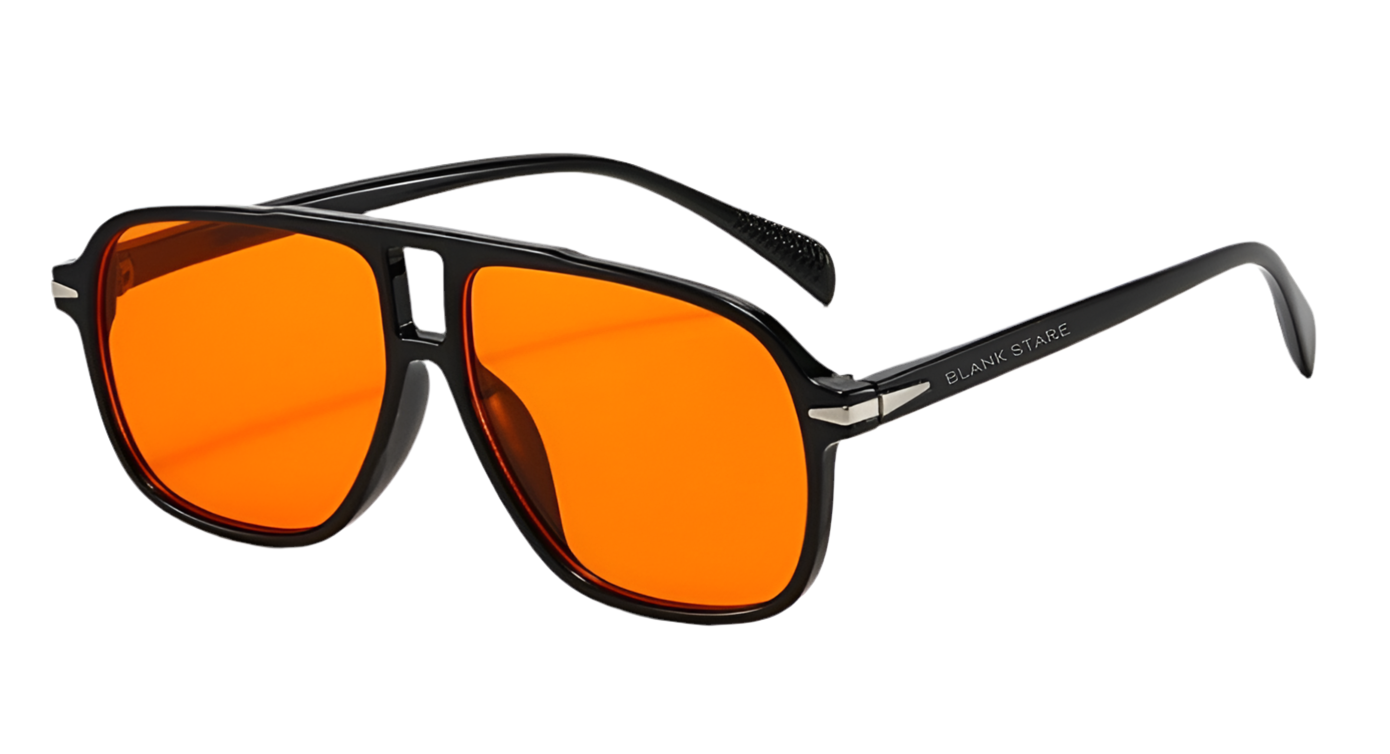 Classic aviator shades in black with sliver "BLANK STARE" detailing and bright orange lenses for a vibrant and sporty twist on a timeless style.