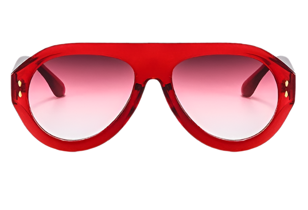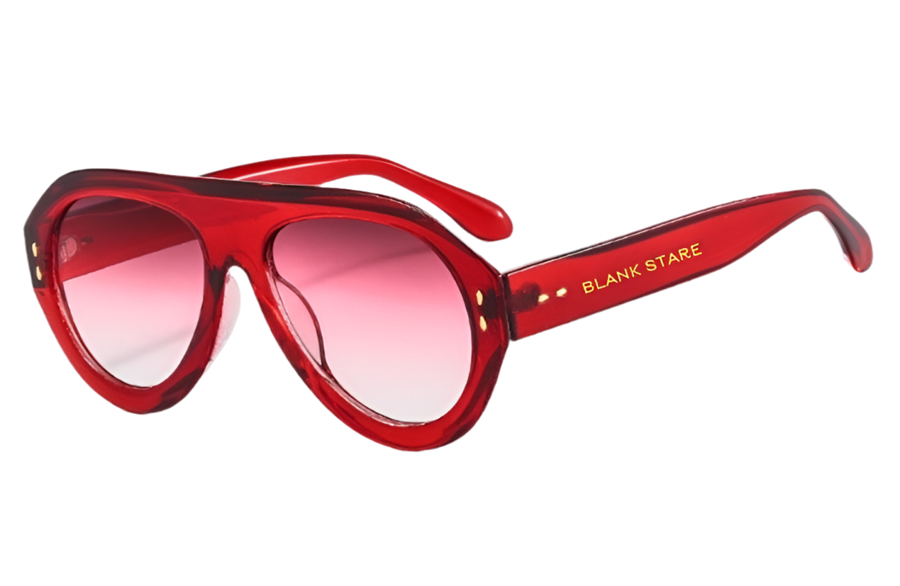 Bold red sunglasses featuring a glossy red acetate frame and signature gold "BLANK STARE" detailing with a distinct retro-inspired aviator silhouette. These sunglasses are paired with gradient pink-tinted lenses for a stylish yet playful look. They're perfect for adding a pop of color and personality to your everyday outfits.